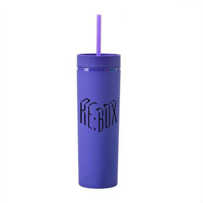 Gobelet en plastique double couche Tasse à eau avec peinture en caoutchouc simple et personnalisée Tasse à paille droite scellée de 16OZ