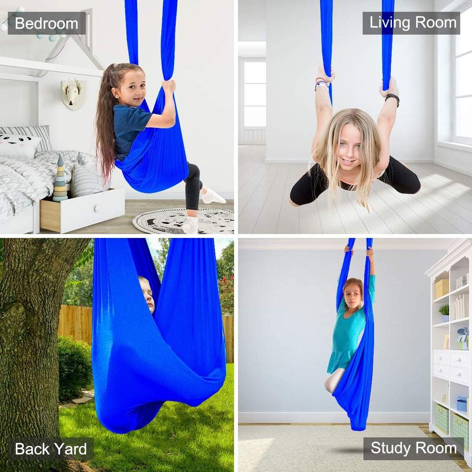 Hamac thérapeutique double couche réversible rose gris pour enfant autiste TDAH Aspergers Nylon pour camping randonnée Matériel inclus