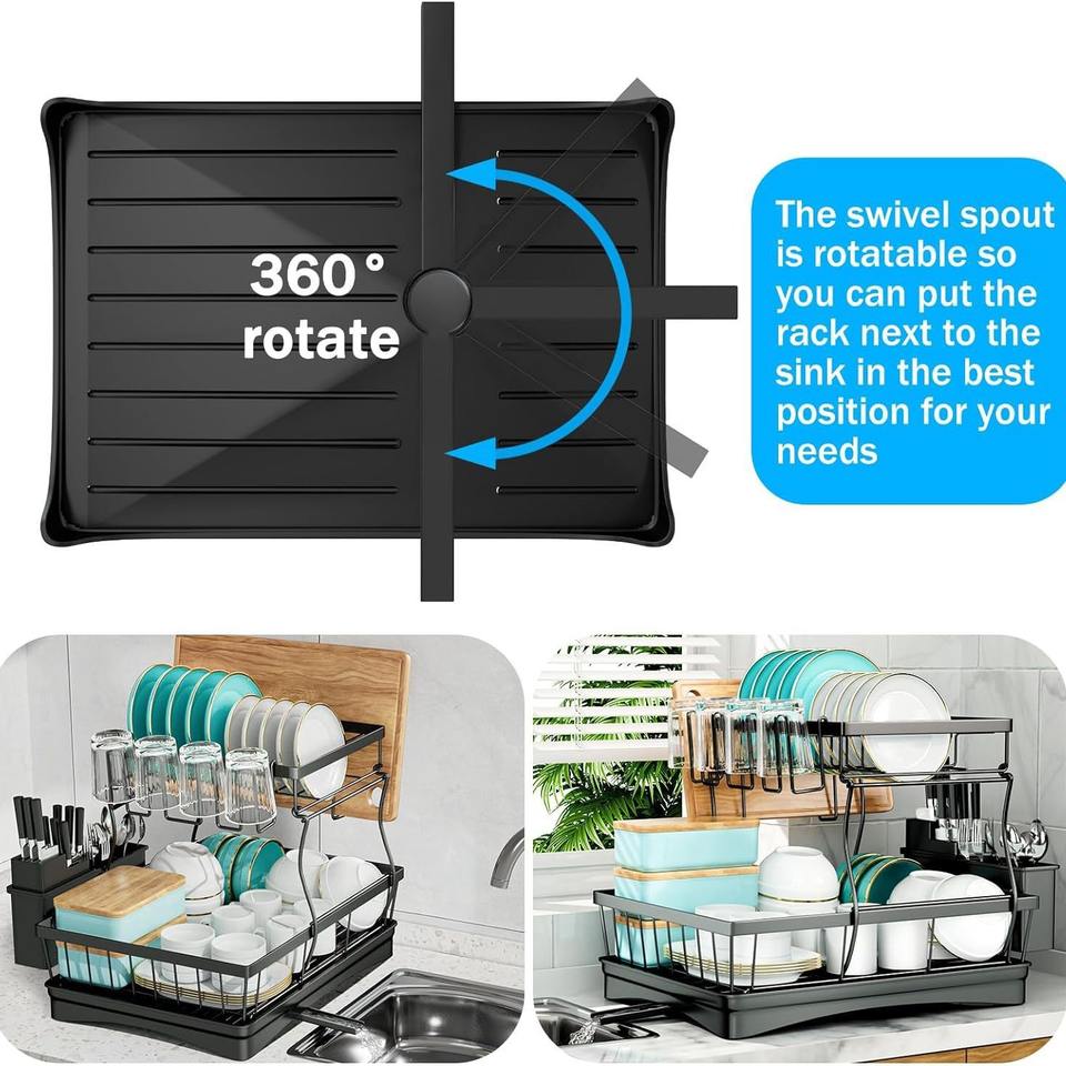 Rack à vaisselle en acier inoxydable double couche pour verres à vin Baguettes Couteau Fourchette en boîte Rack de cuisine Drain pour assiettes collantes