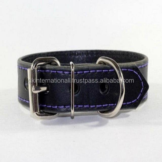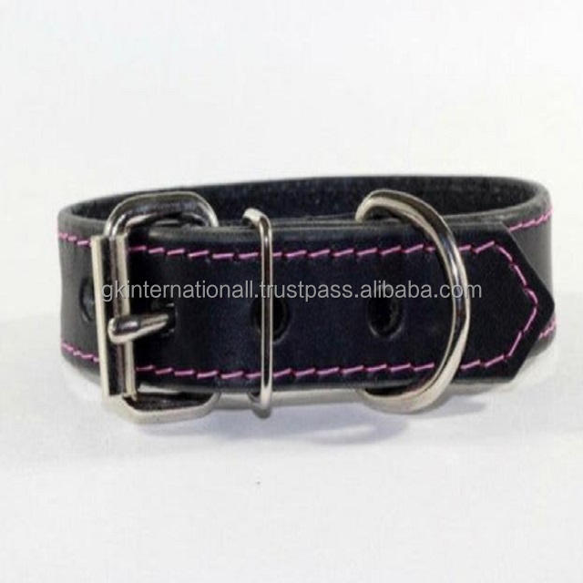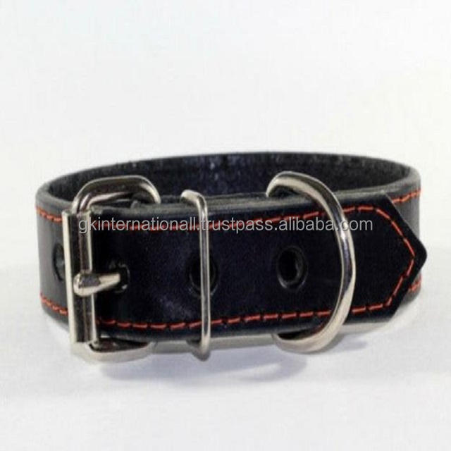 Collier de chien en cuir véritable noir à double couche et cousu dans toutes les tailles et couleurs personnalisées avec quincaillerie en nickel inoxydable