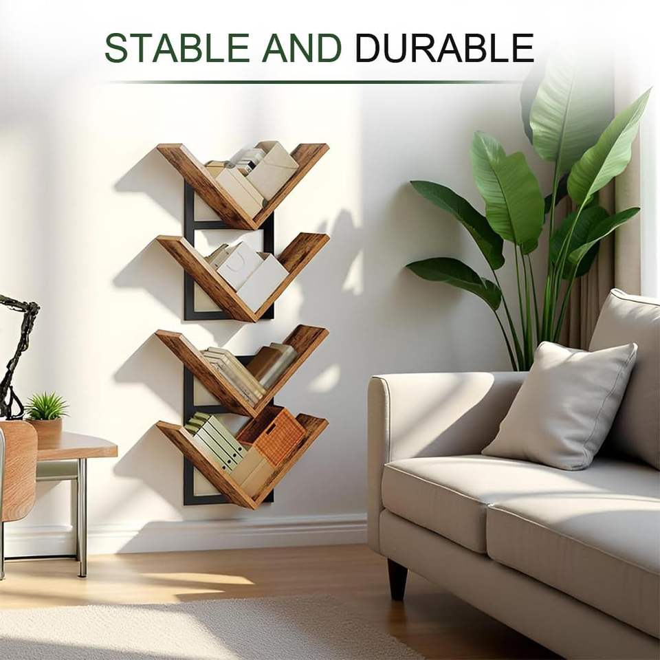 Étagère murale en bois double couche en forme d'arbre, petite étagère en bois naturel, organisateur de rangement suspendu, maison moderne
