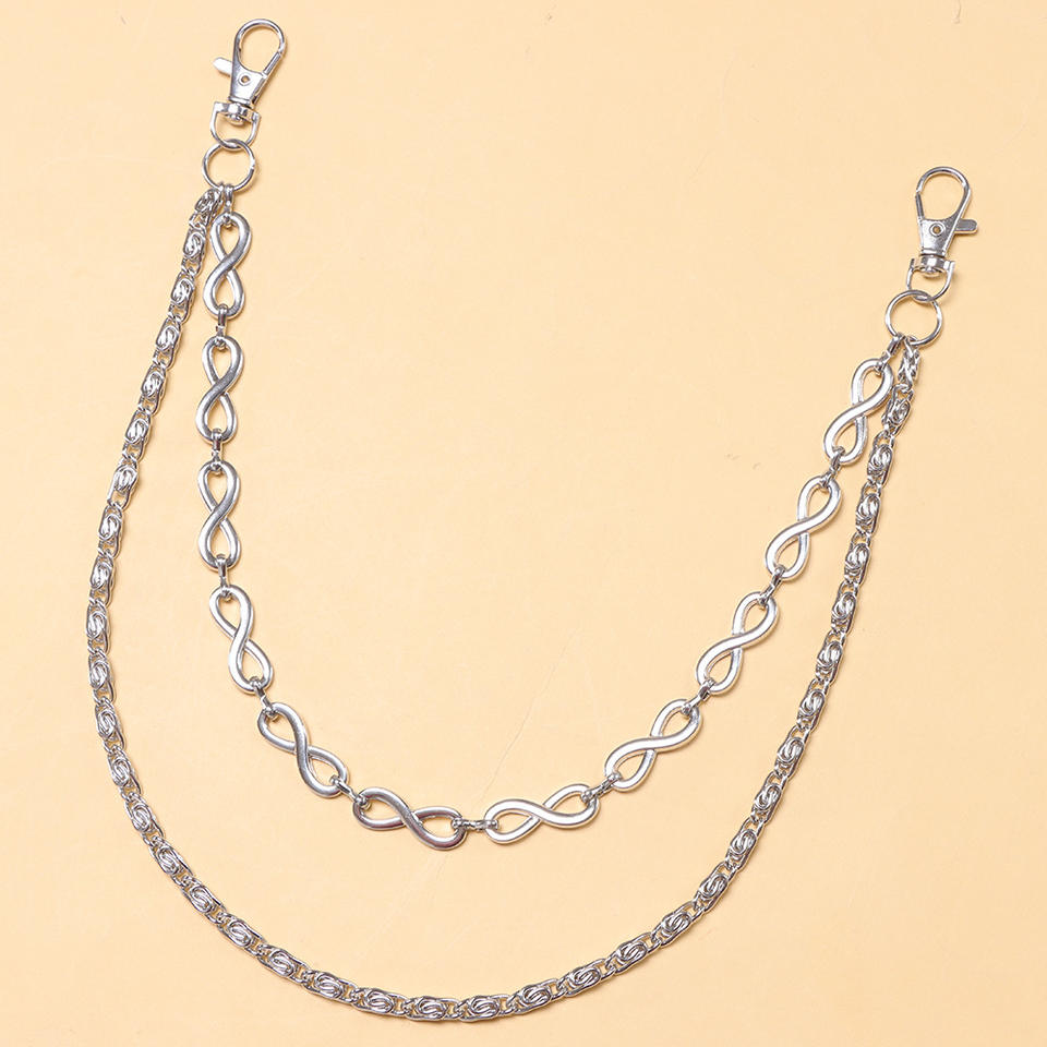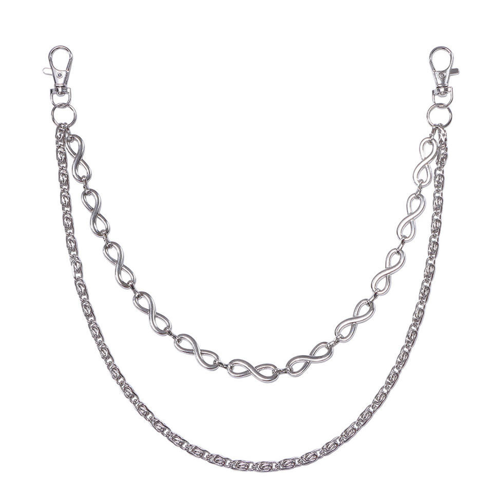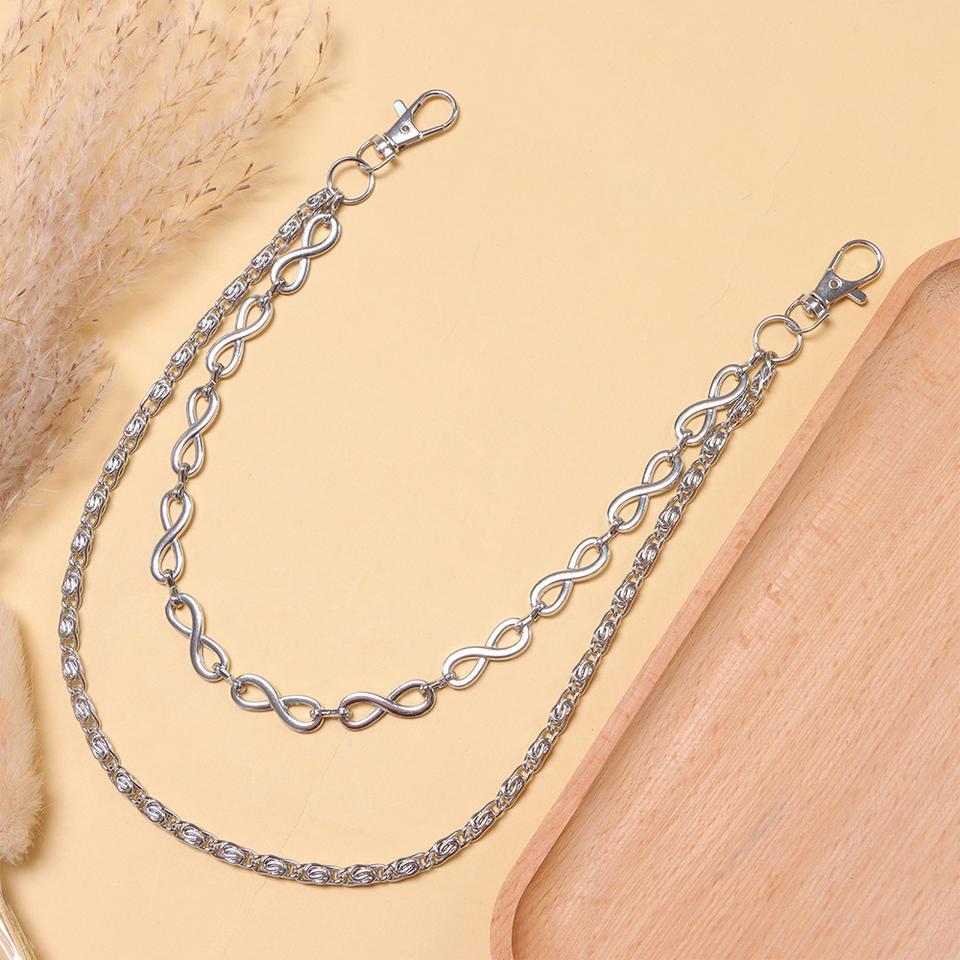 Chaîne de pantalon double couche en forme de huit, en argent tibétain, pour jean, style rock, hip-hop, chaîne de taille, style punk décontracté