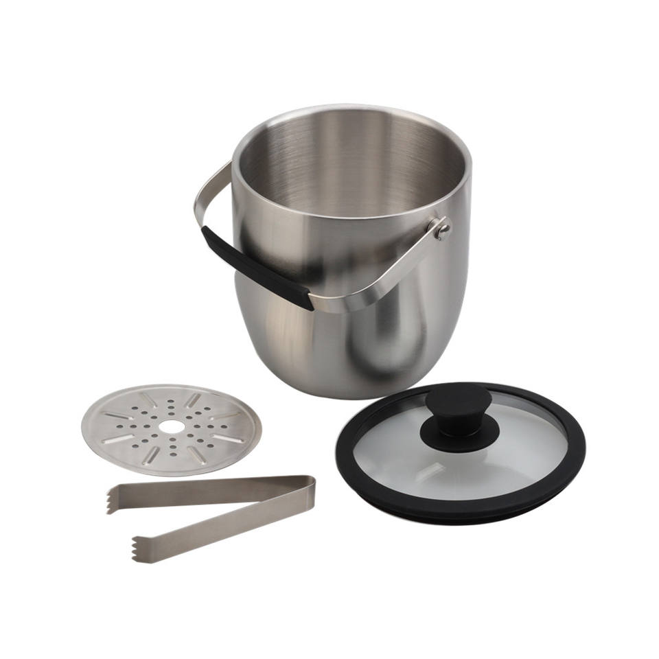 Seau à glace en acier inoxydable double couche avec couvercle en verre