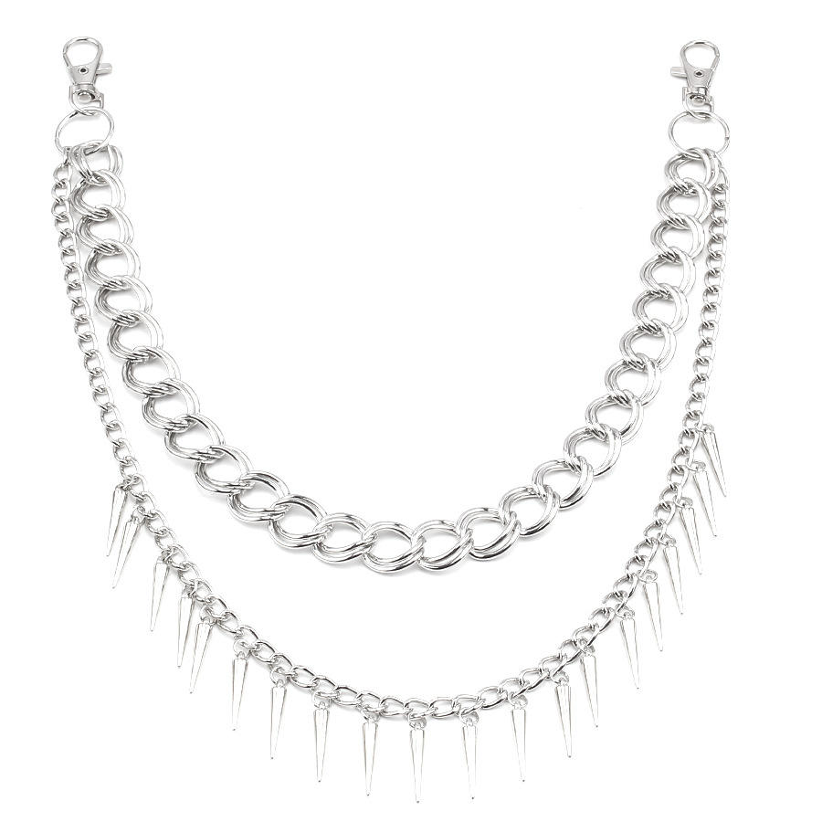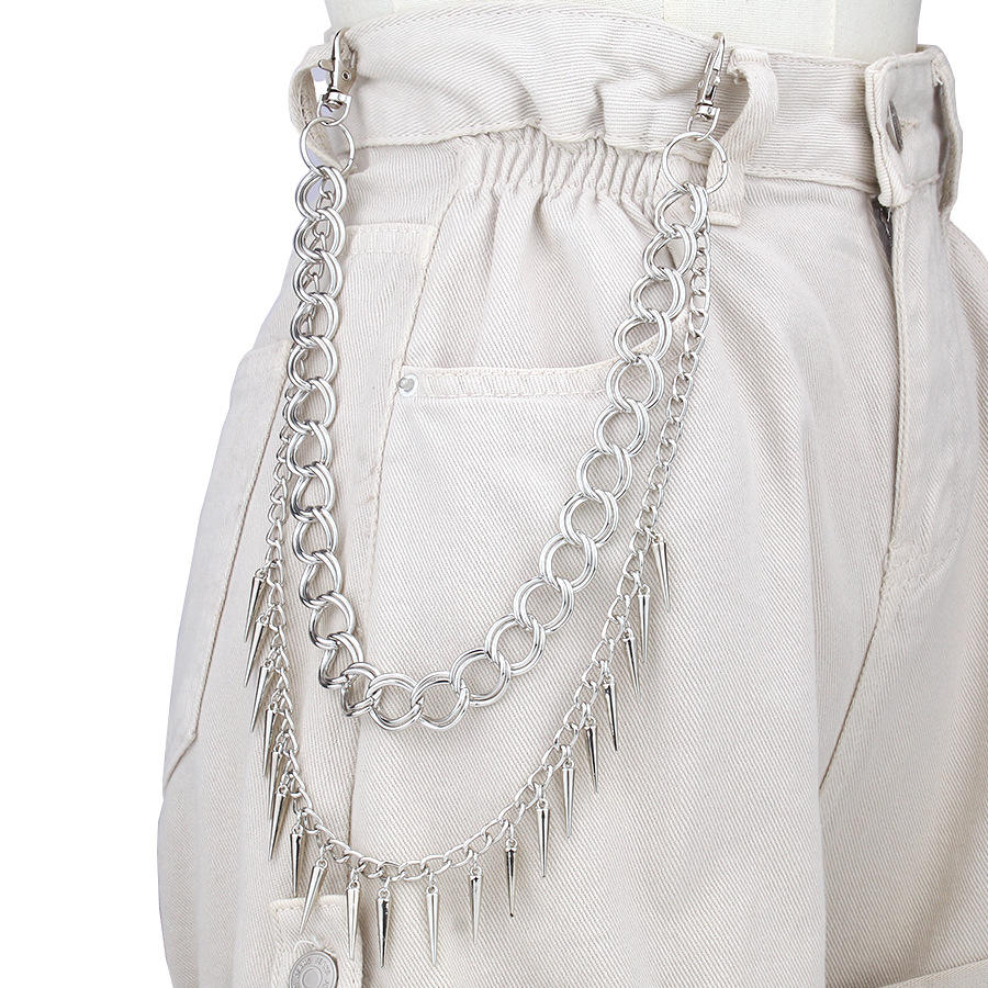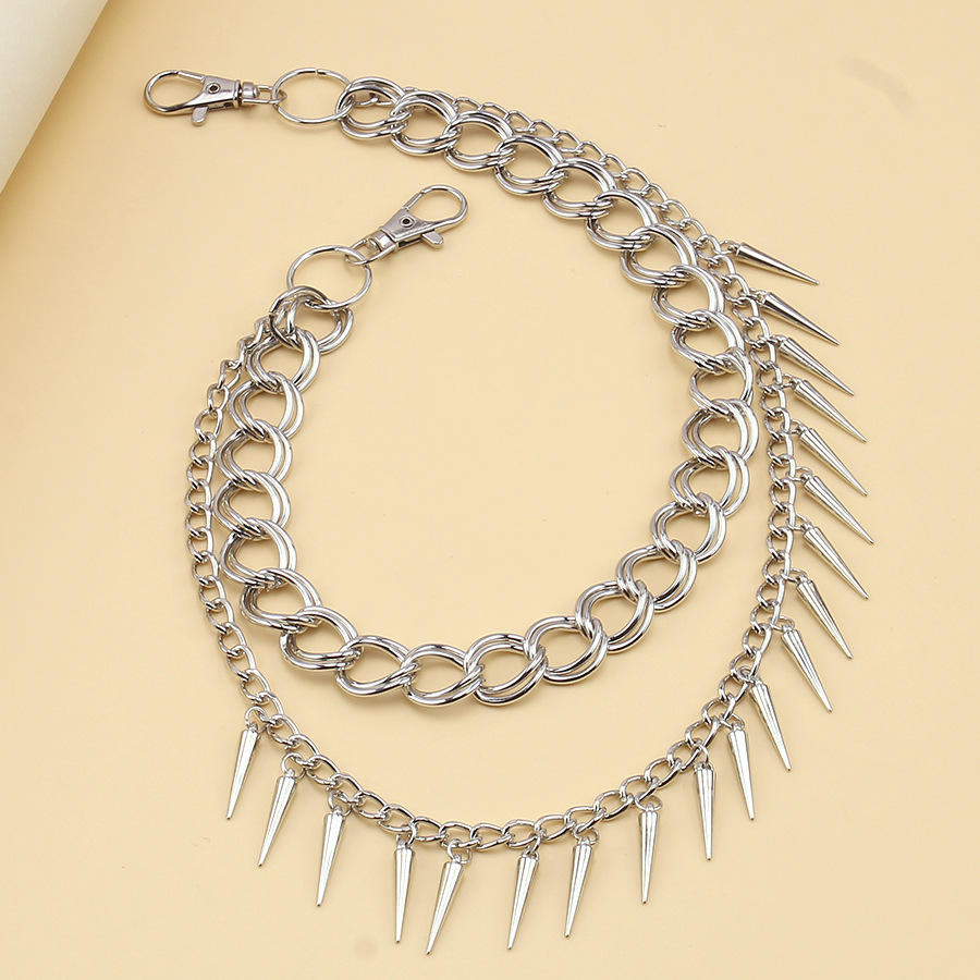 Chaîne de taille en acier inoxydable à double couche avec rivets, accessoire de mode punk hip hop pour adultes