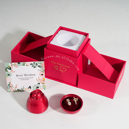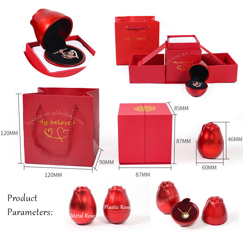 Boîte à bijoux en métal ou en plastique rouge en forme de rose à double levage pour la déclaration de la Saint-Valentin, boîte à bijoux en forme de rose