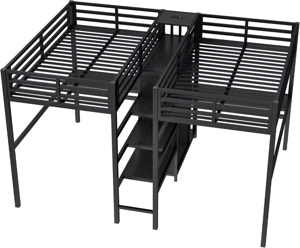Lit mezzanine avec bureau, armoire, station de recharge