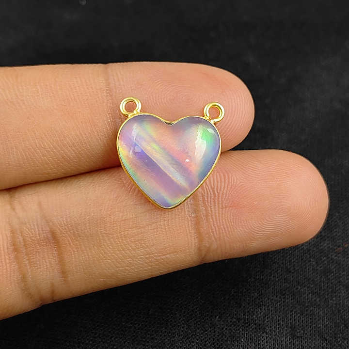 Pendentif en opale à double boucle en forme de cœur Collier en argent sterling 925 Ensemble de lunette en or vermeil Accessoires de bijoux de mode
