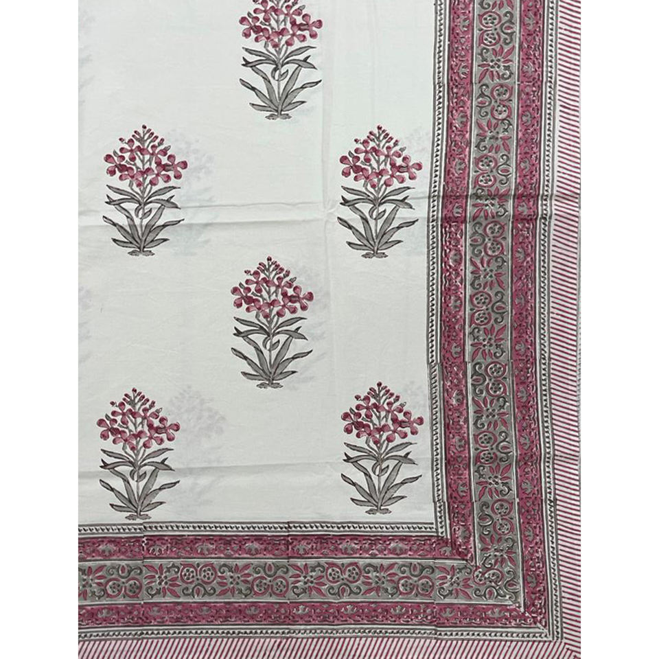 Drap plat géométrique en coton 200TC, imprimé à la main au bloc, double, blanc, respirant, pour la maison, l'hôtel et usage élégant