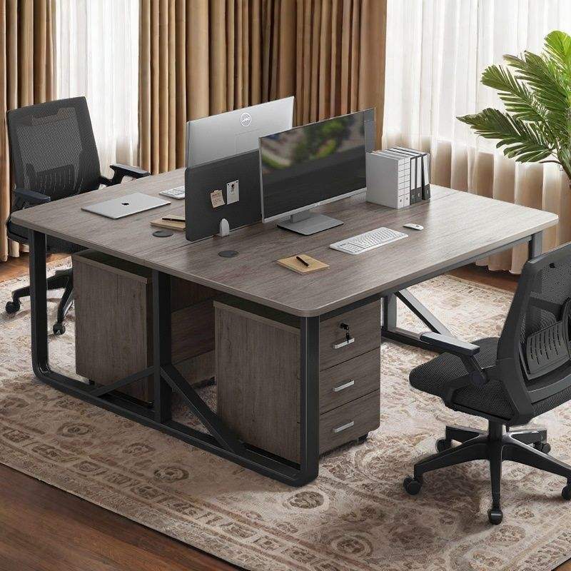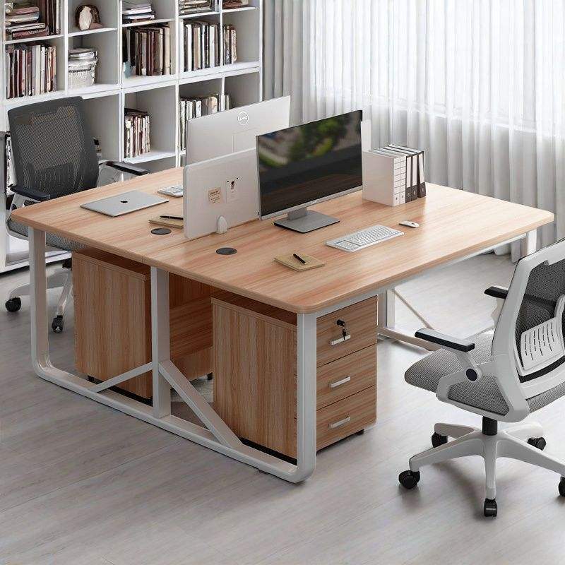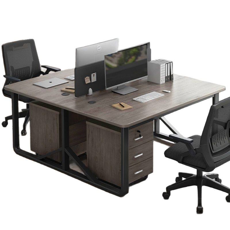 Bureau double avec armoire de classement, bureau d'ordinateur moderne pour bureau à domicile, dessus en bois, cadre en métal, rangement avec tiroirs AL56
