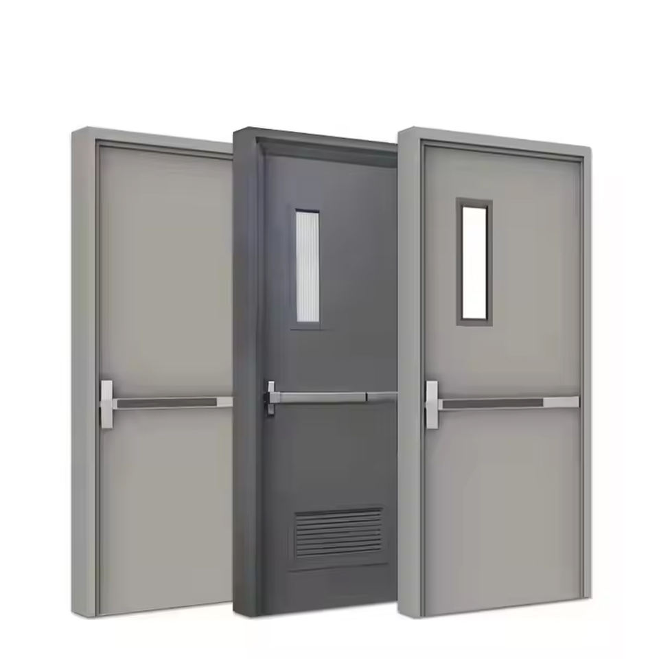 Porte ignifuge en acier isolée à double passage ouvert pour centre commercial et atelier Verre peint pour application hospitalière