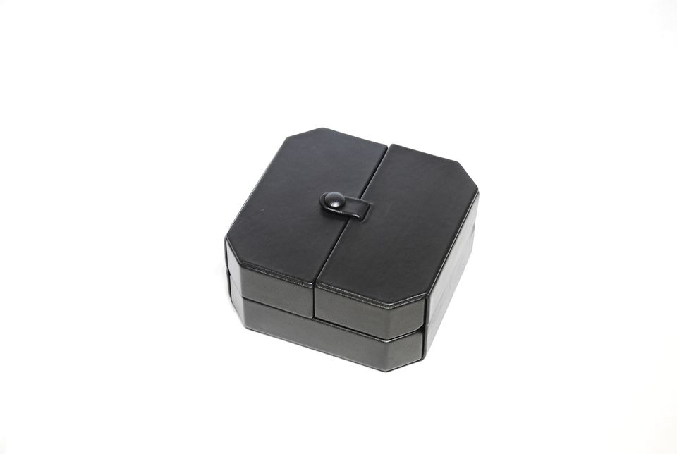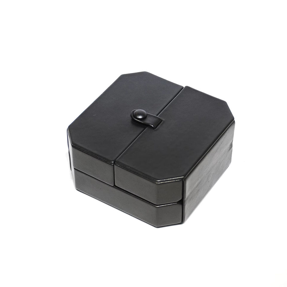 Boîte à bijoux rectangulaire double ouverture Yongda en véritable peau de mouton, intérieur en daim, grande capacité 110x110x55mm