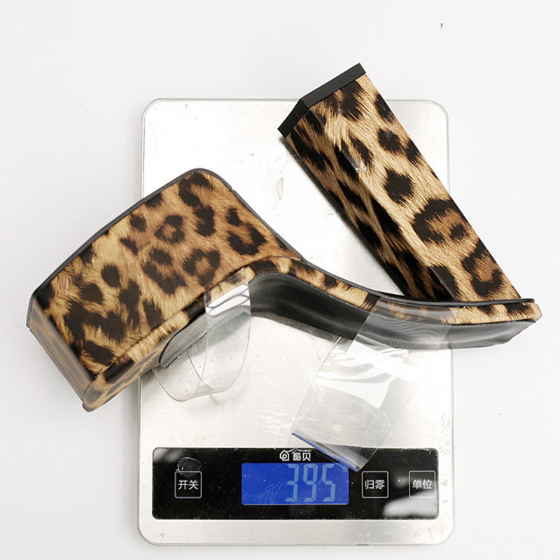 Sandales à plateforme épaisse pour femmes avec double lanière en PVC, talons hauts et épais, motif léopard, nouveauté été