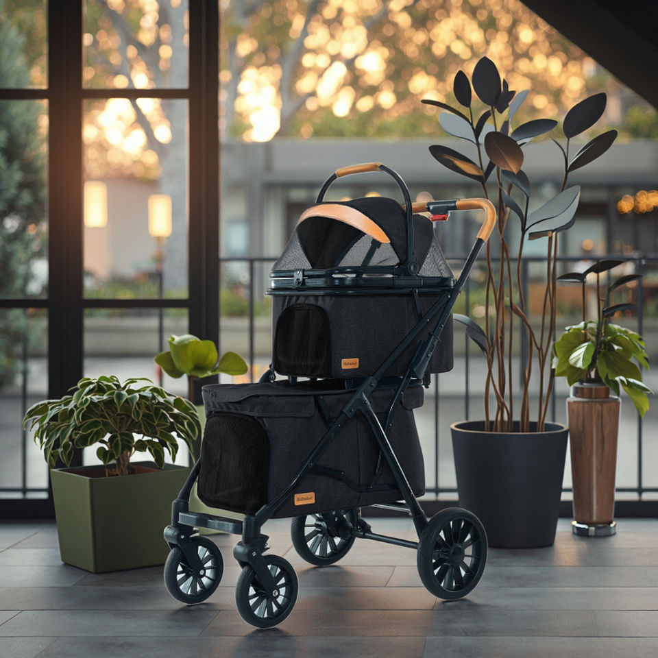 Poussette double pour animaux de compagnie pouvant accueillir deux animaux de compagnie Chien et chat Sac de transport de voyage 4 roues adapté aux chiots