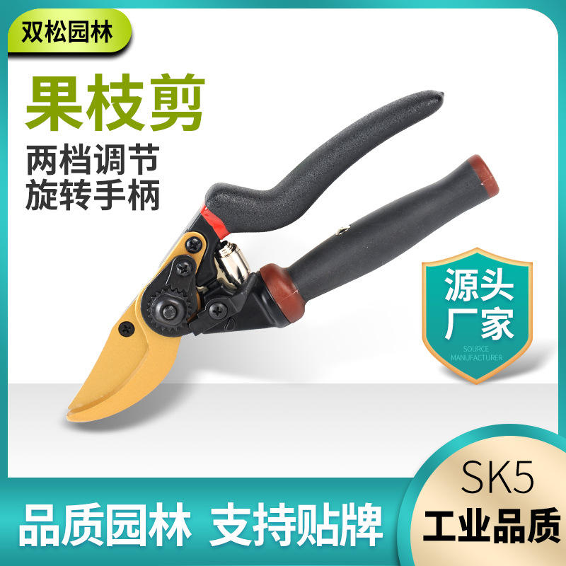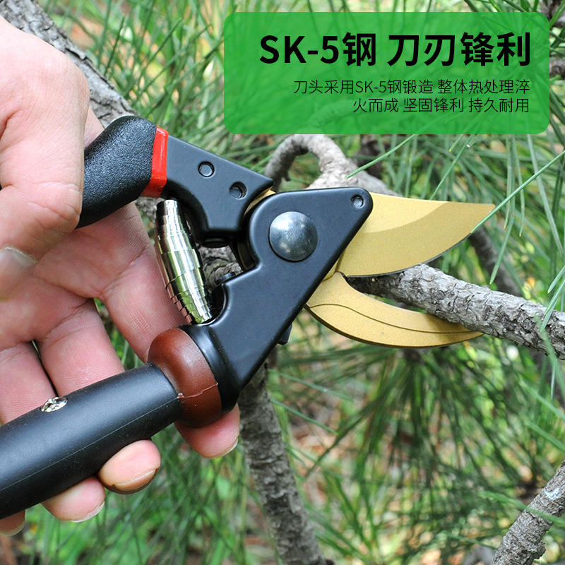 Sécateur de jardin haut de gamme Double Pine à poignée rotative 220 mm en acier au carbone pour couper les branches de 20-30 mm