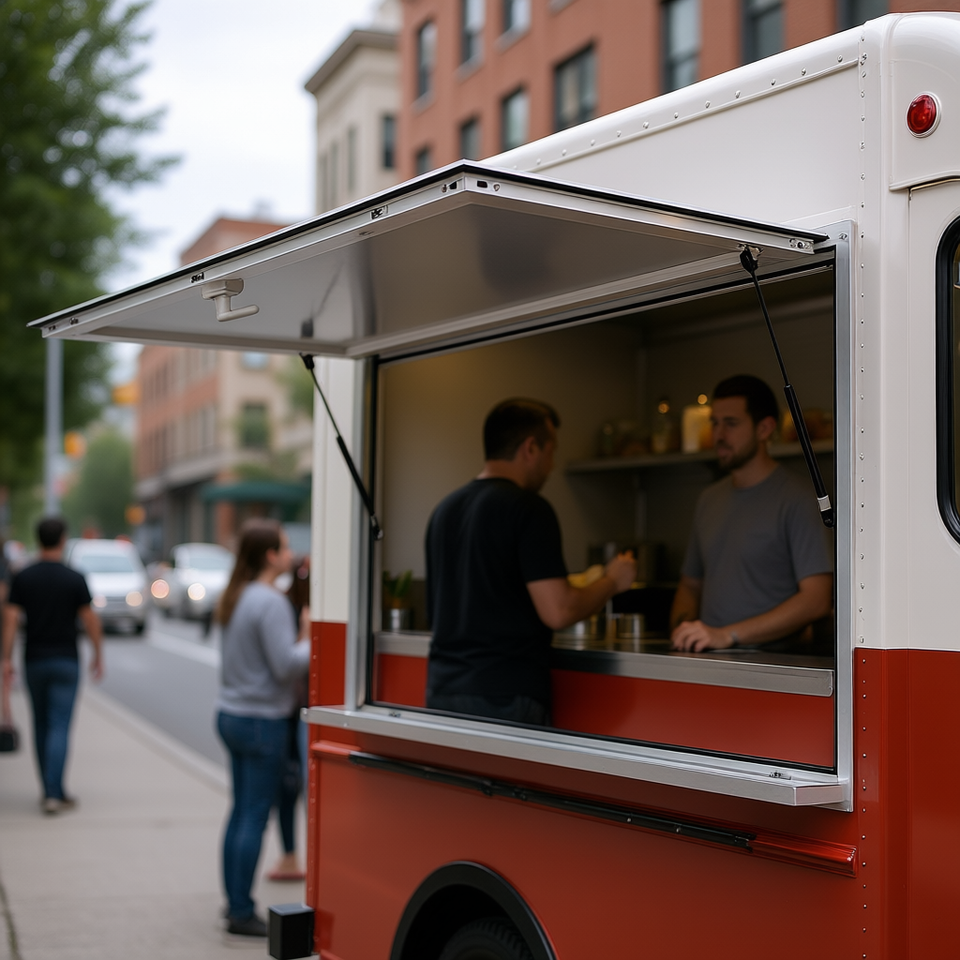 Auvent de concession à double point de fixation pour porte de food truck, 53 x 33 pouces, cadre en aluminium, montage facile