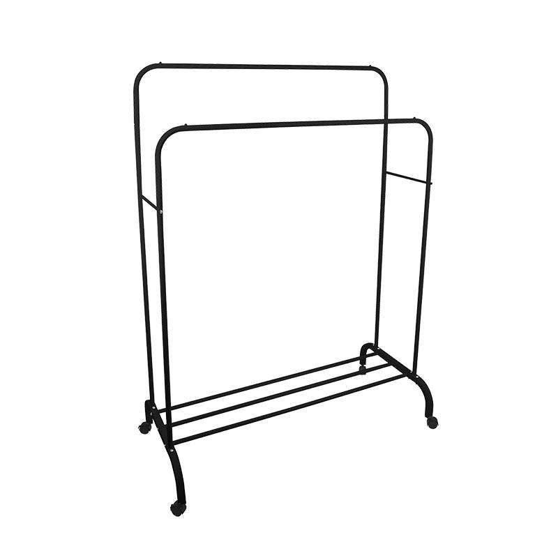 Porte-vêtements double poteau en métal sur pied pour magasins de vêtements, présentoir simple d'intérieur sur roulettes