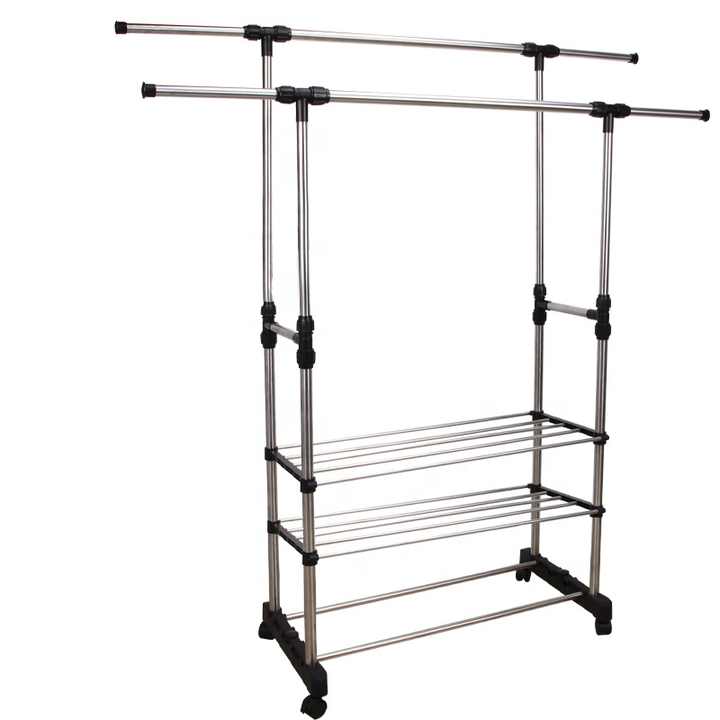 Nom du produit:Portant à vêtements à double barre avec roulettes - Étendoir à linge