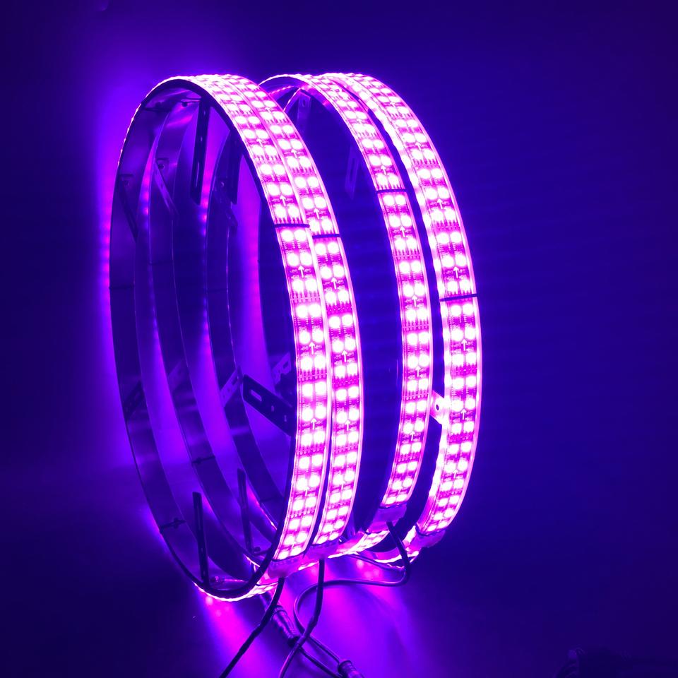 Kit d'anneaux lumineux à LED à double rangée de 17 pouces pour roues de voiture et de camion étanche avec contrôle par application