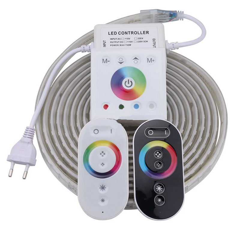 Bande lumineuse RGB LED à Double rangée avec télécommande, ruban décoratif, Flexible, étanche, 5050 V 110V, 120 diodes/M, 220V