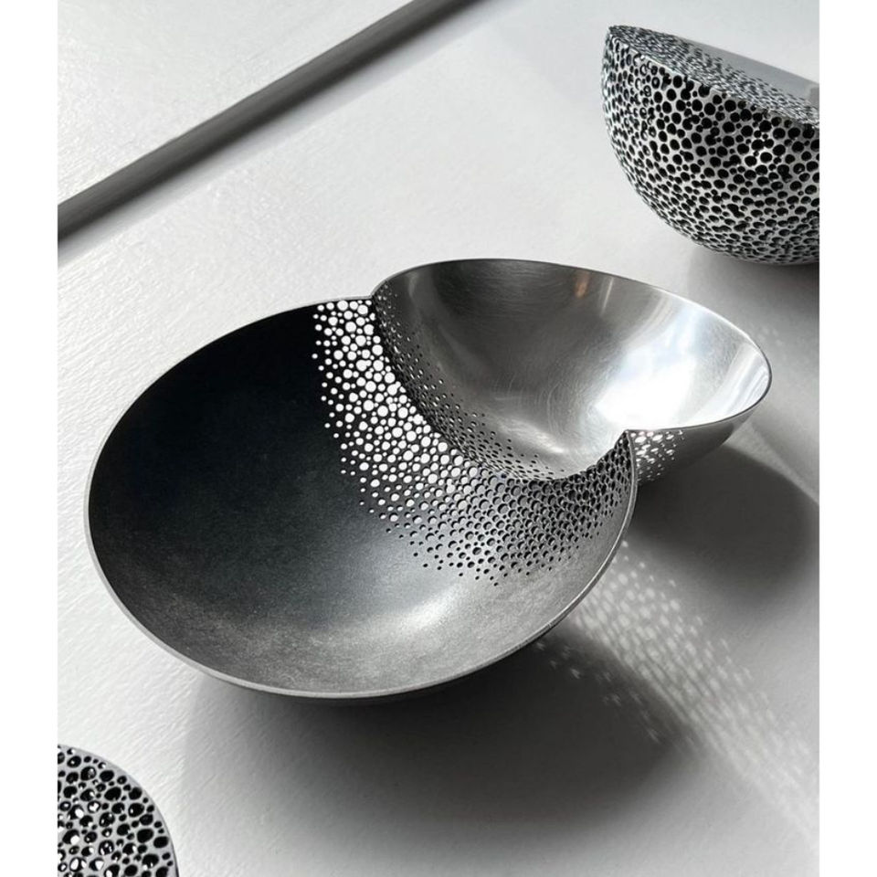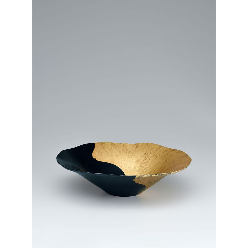 Bol de service alimentaire de luxe de forme irrégulière, fabriqué en métal de haute qualité, avec revêtement en poudre noir à double teinte et finition plaquée or.