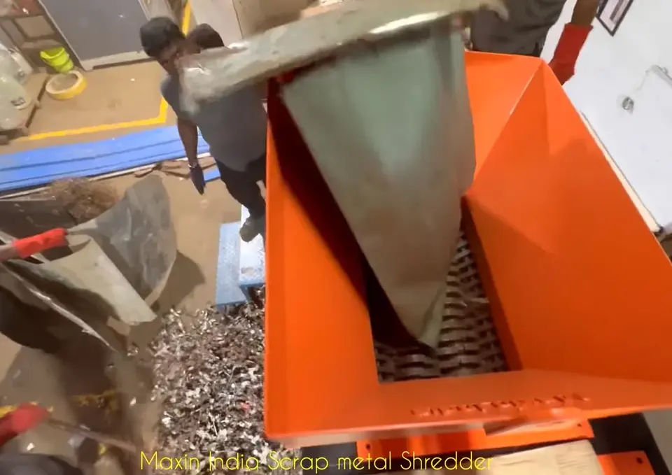 Broyeur de tôles de toiture à double arbre, capacité de production de 750 kg/h, broyeurs de ferraille pour applications industrielles