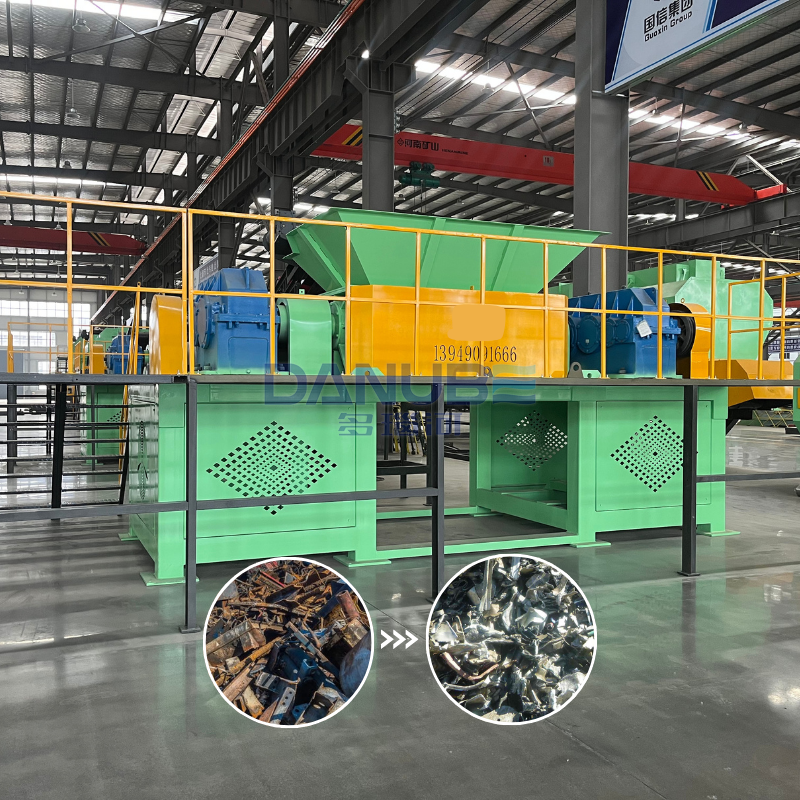 Broyeur à double arbre Broyeur de déchets plastiques et d'acier pour usine de tri des déchets