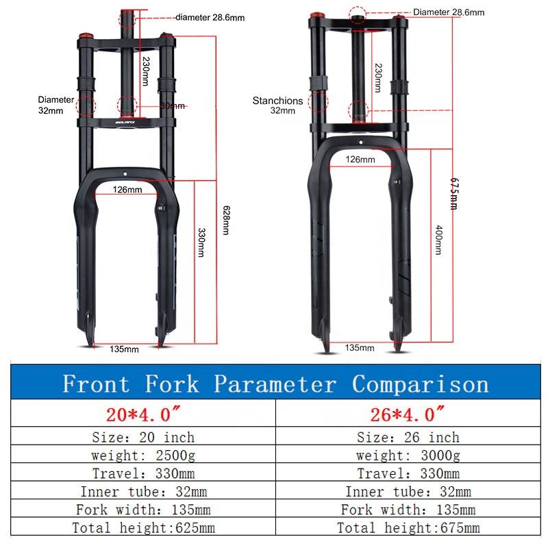 Fourche de vélo de neige à Double épaule Qr plage 26x4.0 pouces/20x4.0 pouces 130mm fourche avant de vtt à Suspension pneumatique