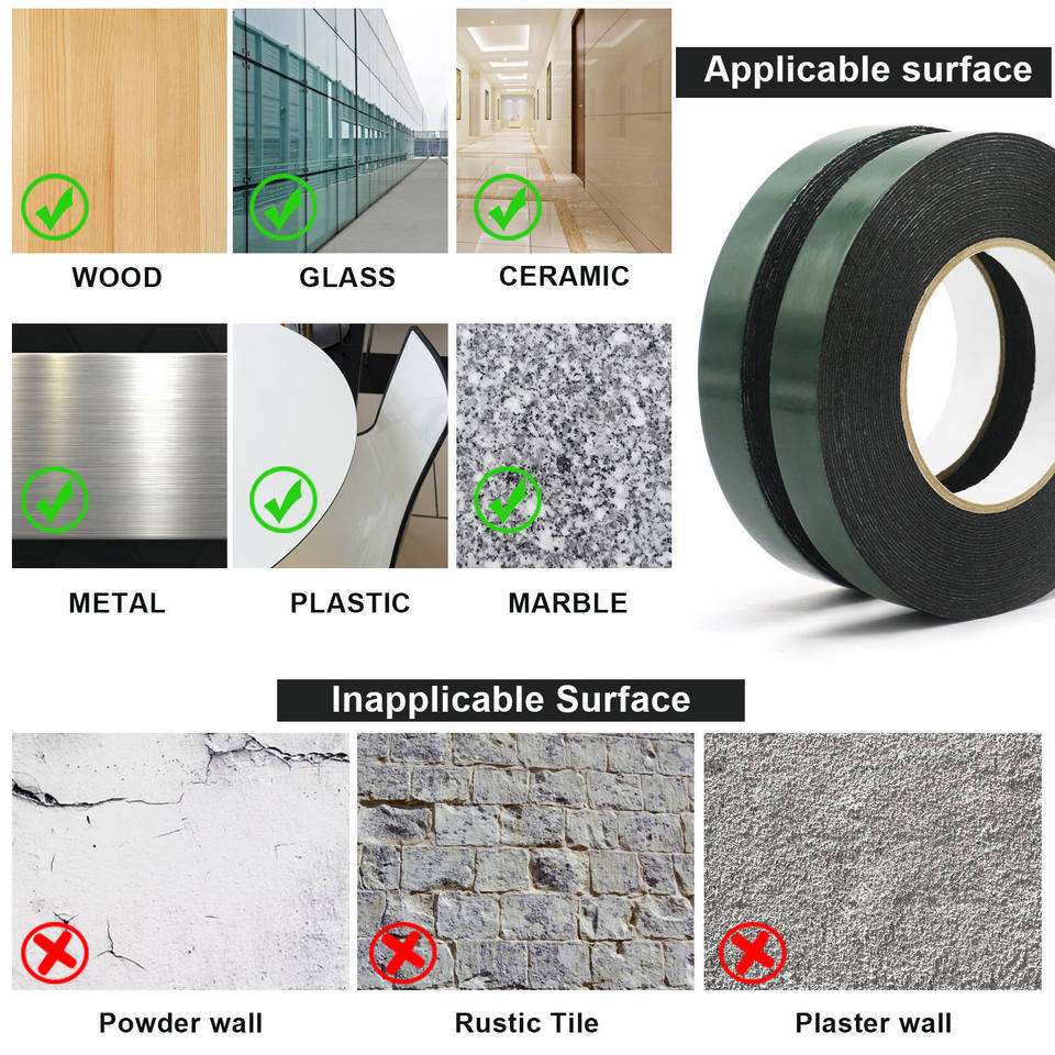 Ruban adhésif double face en mousse acrylique PE de 1mm d'épaisseur, découpé avec forme personnalisée 1mm x 10 mm x 50 m
