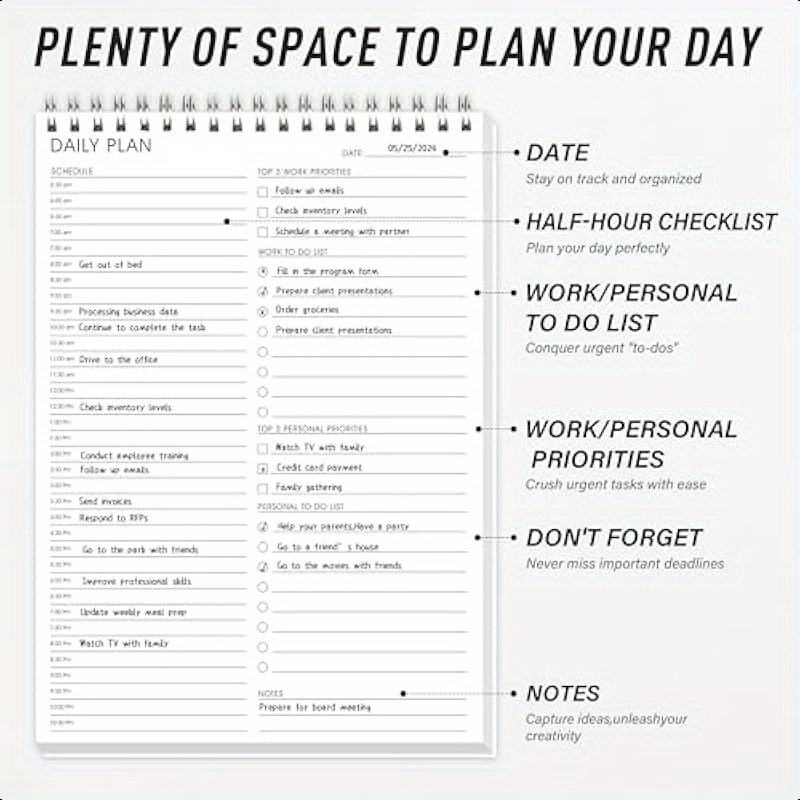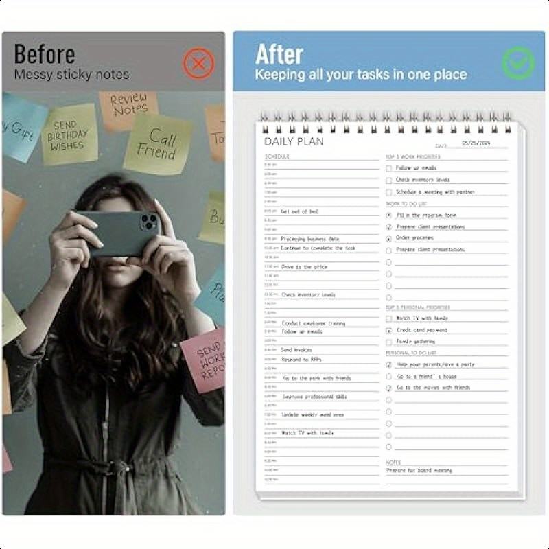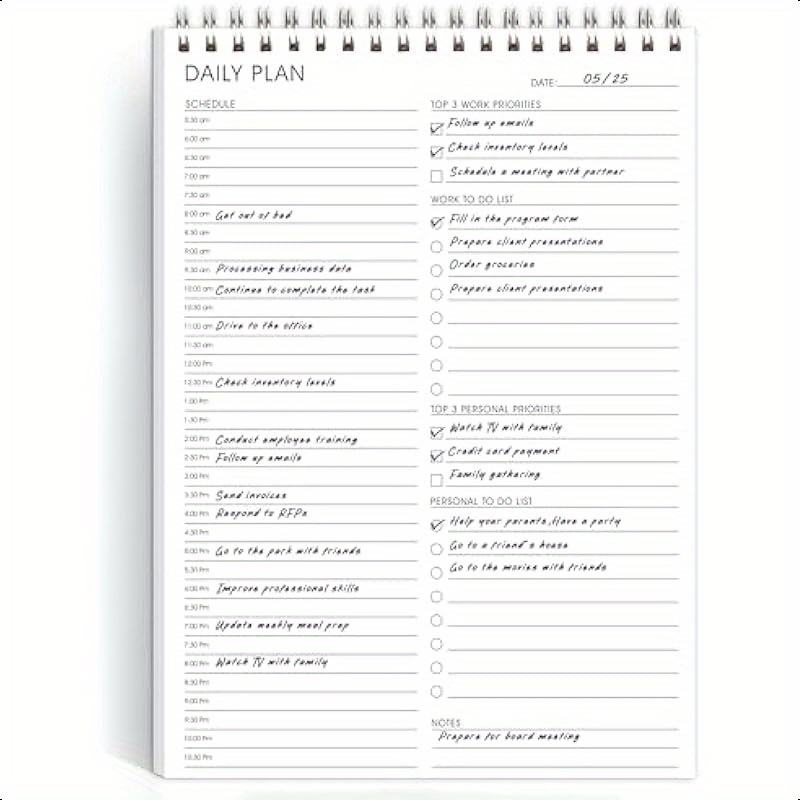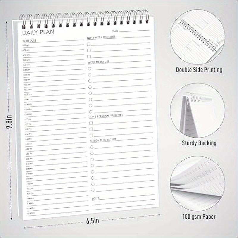 Bloc-notes double face 6.5 "x 9.8" non daté pour planificateur horaire de 52 semaines, papier épais de 100 g/m² avec objectifs quotidiens