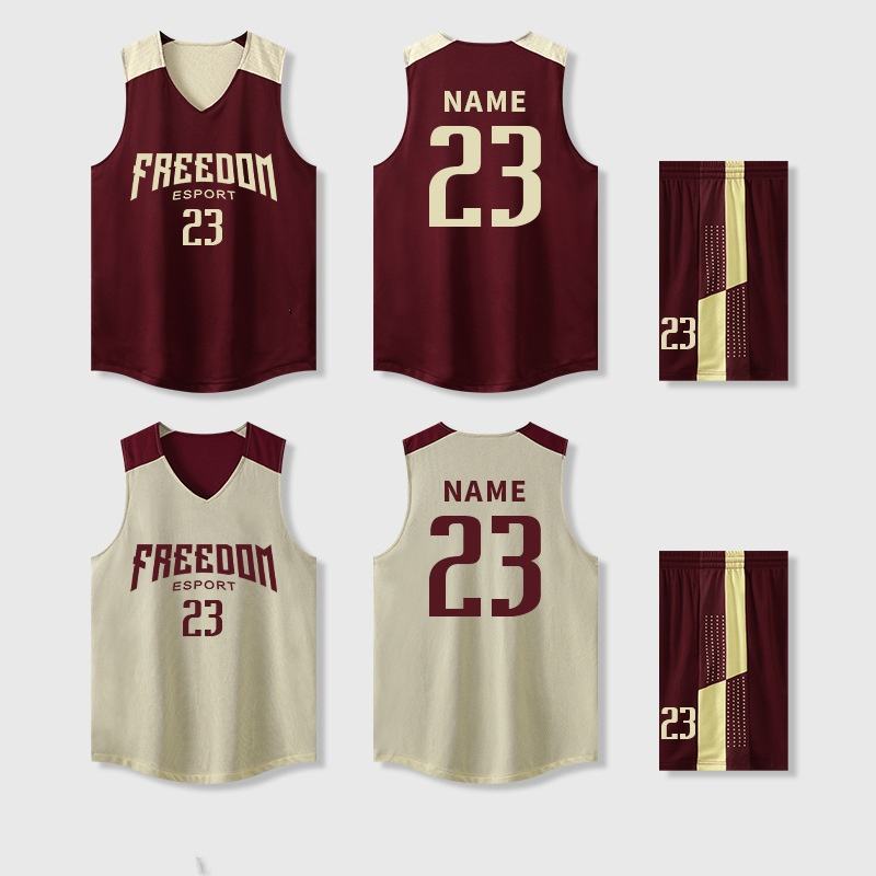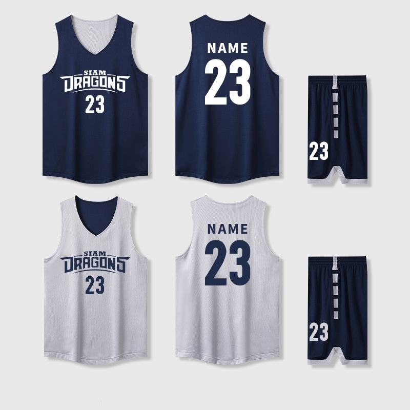 Ensemble de maillots de basket-ball double face - Maillot décontracté 100% coton imprimé en sérigraphie personnalisé avec technologie anti-transpiration en maille