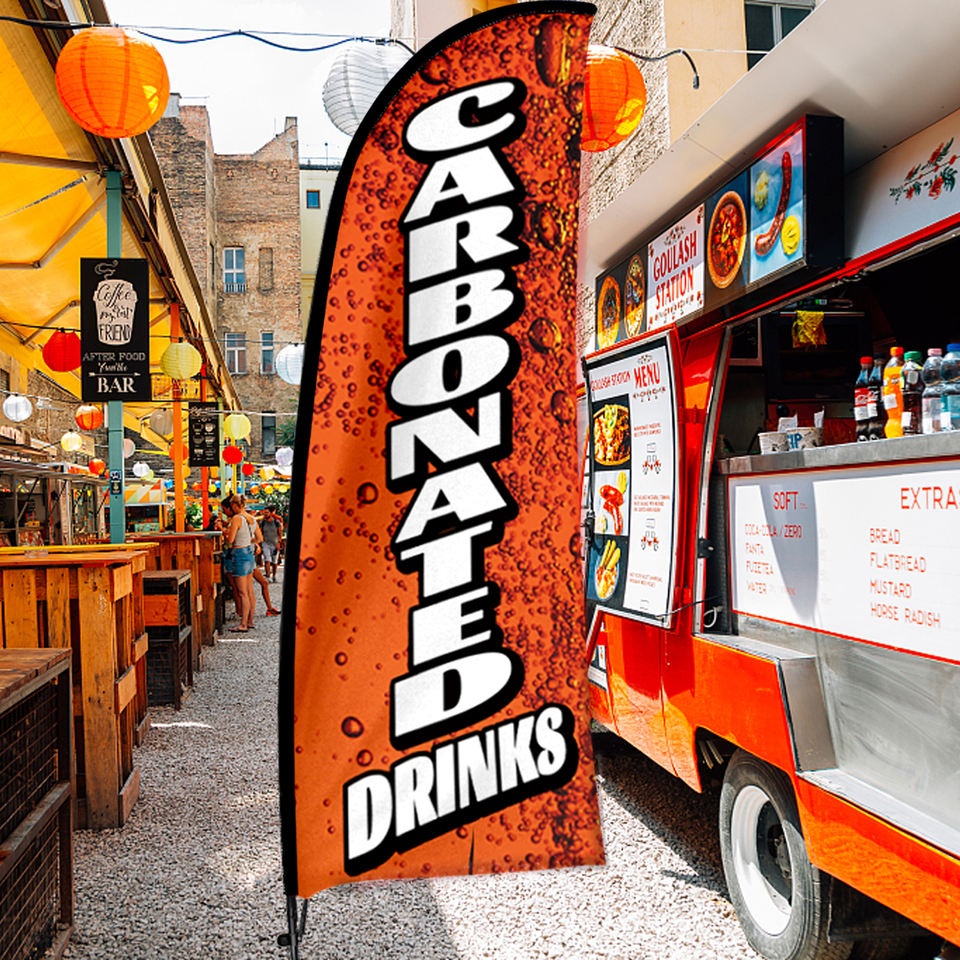Kit drapeau à plumes double face pour la publicité alimentaire comprenant des piquets de sol et des poteaux promotionnels commerciaux