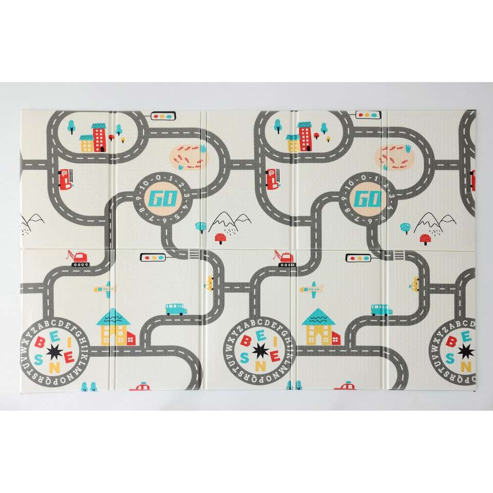 Tapis de jeu double face pliable 200x130x1cm pour bébé Mousse XPE non toxique Imperméable et légère Design Car Race & Clouds Theme