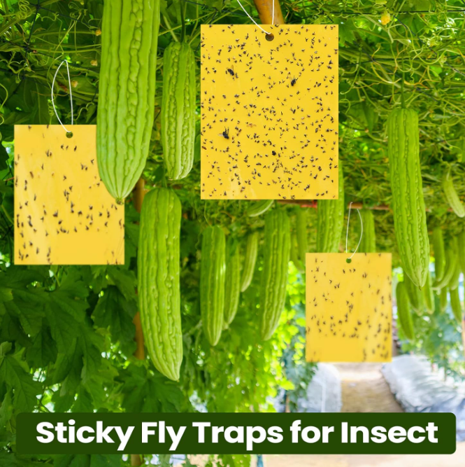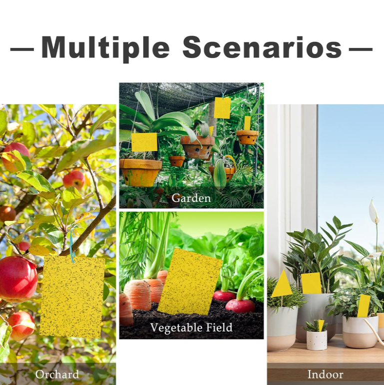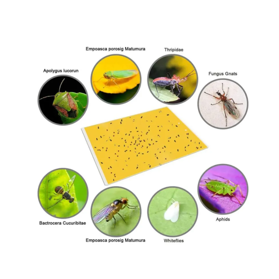 Papier adhésif double face pour attraper les mouches des fruits Piège à mouches collant jaune pour pots et jardins