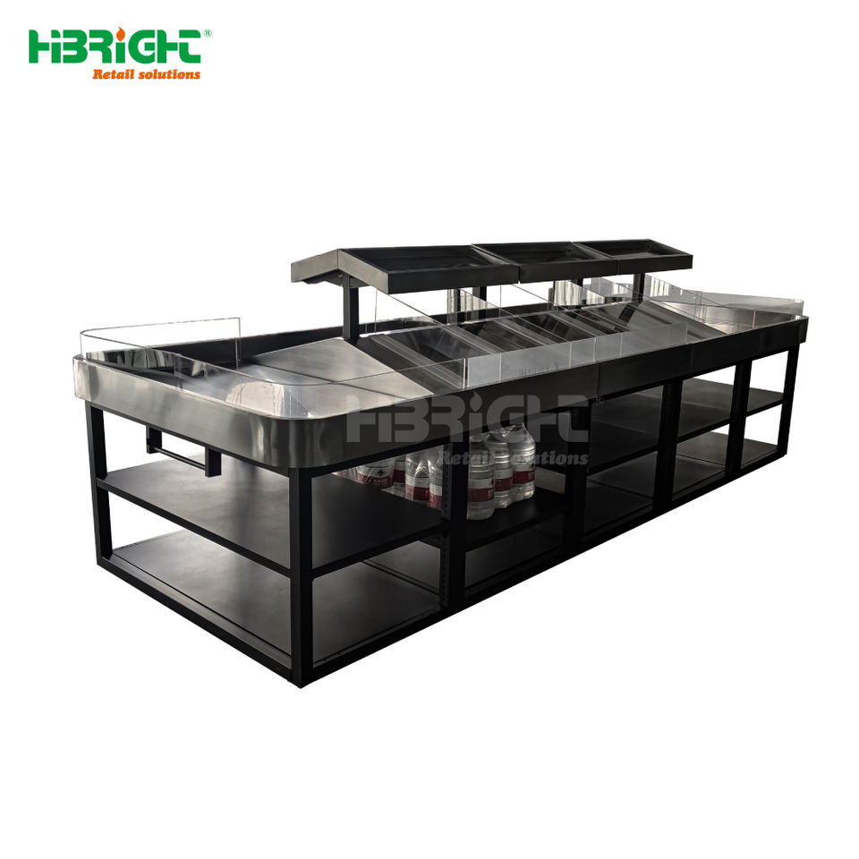 Double-Sided Heavy Duty Fruit Vegetable Rack Supermarket Display Grocery Shelves Steel Wood Material