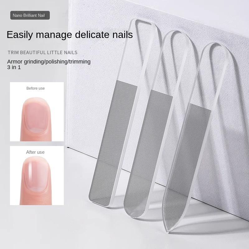 Mini lime à ongles en verre nano double face, outil de polissage en plastique lavable pour une manucure sans danger et éclaircissante