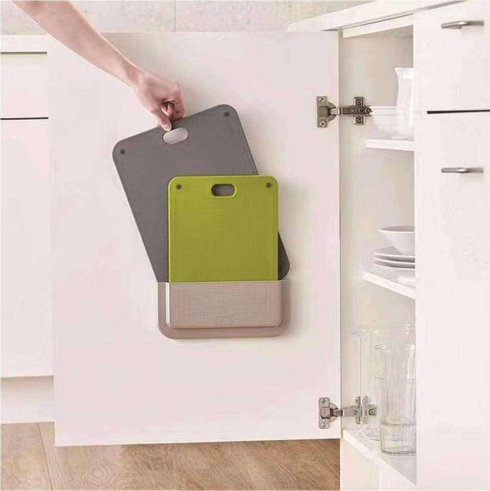 Planche à découper rectangulaire double face en plastique à fixer au mur, facile à nettoyer, pour la cuisine et les légumes.