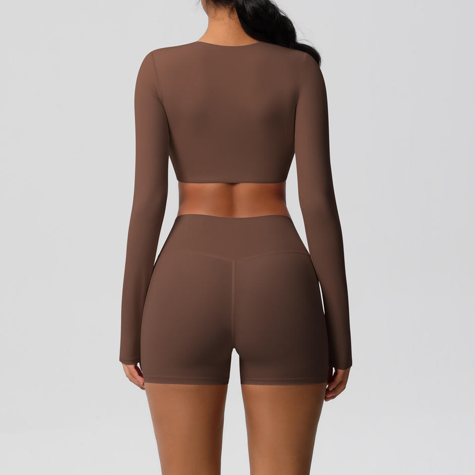 Coussin de poitrine poncé double face pour le yoga et la course à pied Sports Couleur unie Combinaison de fitness à manches longues avec cible transfrontalière
