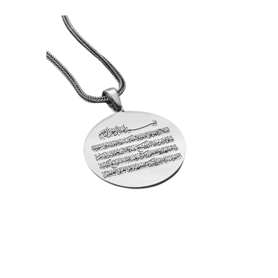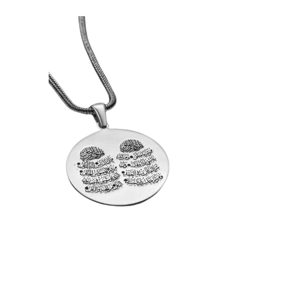 Double-Sided Silver Necklace with Ayat al-Kursi, Nas and Felak Surahs Engraved
