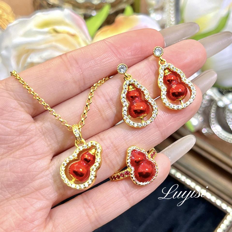 Collier de baies recouvertes de sucre double face Pendentif de haute qualité Boucles d'oreilles en diamant rouge pour femmes Bague Folu émaillée vintage Nouveau