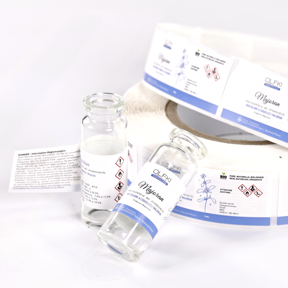 Etiquettes pour flacons en vinyle double face de 10ml et 5ml pour l'emballage de poudre de peptide Autocollants avec logo personnalisé pour produits emballés