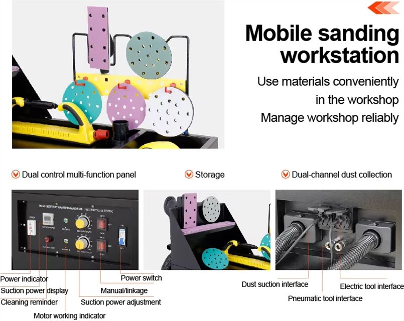 Système d'extraction de poussière pour polisseuse de voiture à double poste, machine de ponçage à sec pour la réparation de carrosserie
