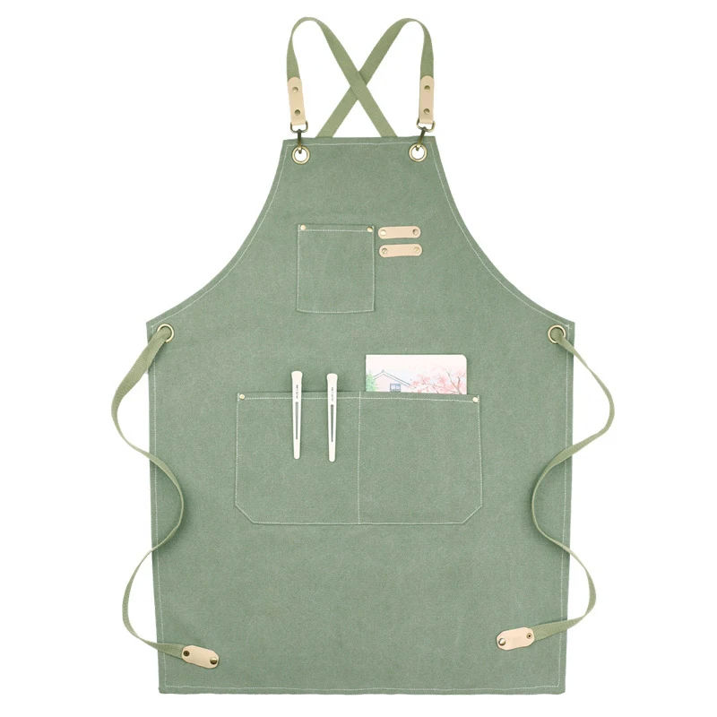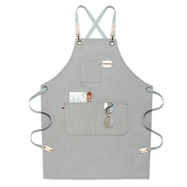 Tablier de chef à double couture avec fermeture à cordon de serrage Tablier de chef en toile de coton résistant à l'eau avec dos croisé et sangles amovibles rapides