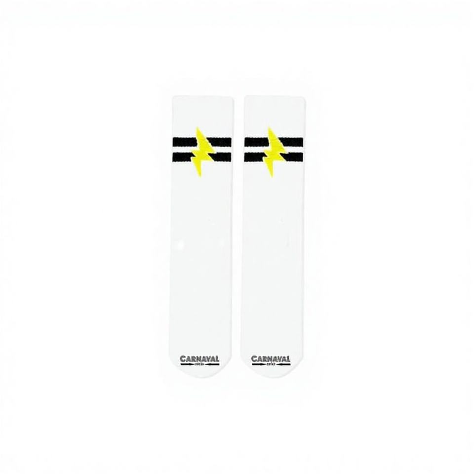 Chaussettes de sport unisexes blanches à double rayures et motif éclair en tissu tissé pour un style de vie actif