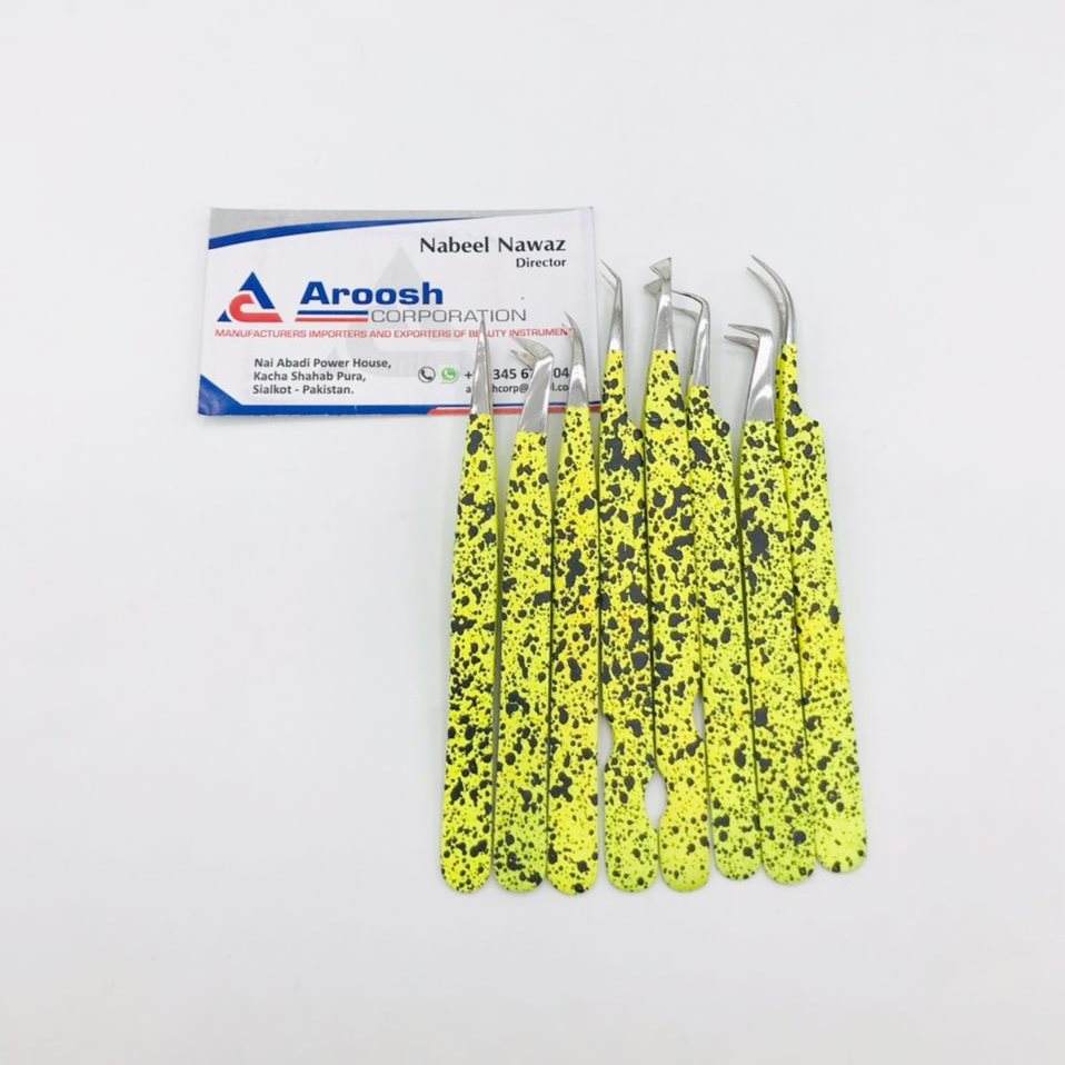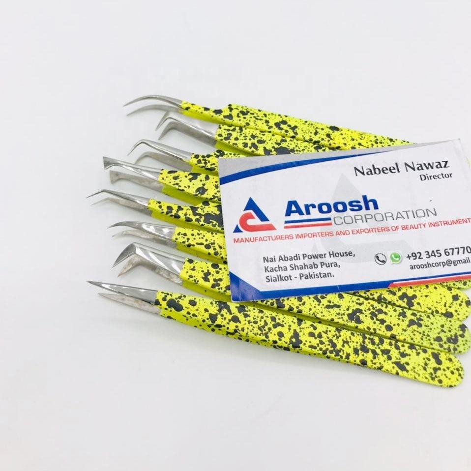 Pince à épiler double couleur jaune Pince à épiler en acier inoxydable de haute qualité pour extension de cils Logo personnalisé Durable