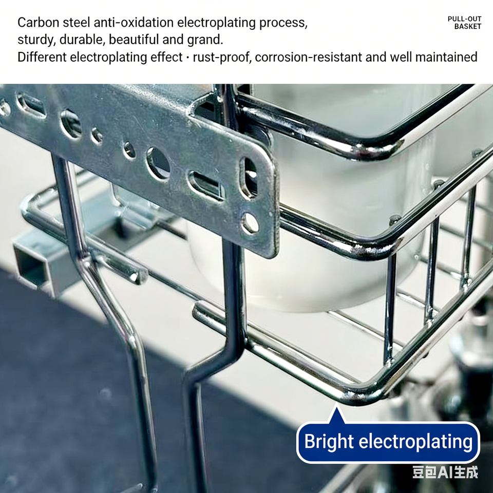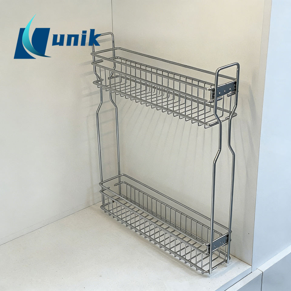 Double Upper Cabinet Organizer Pull-Out Two-Tier Sliding Shelf Ball Bearing Slide Chrome Finish Modern Design for Kitchen