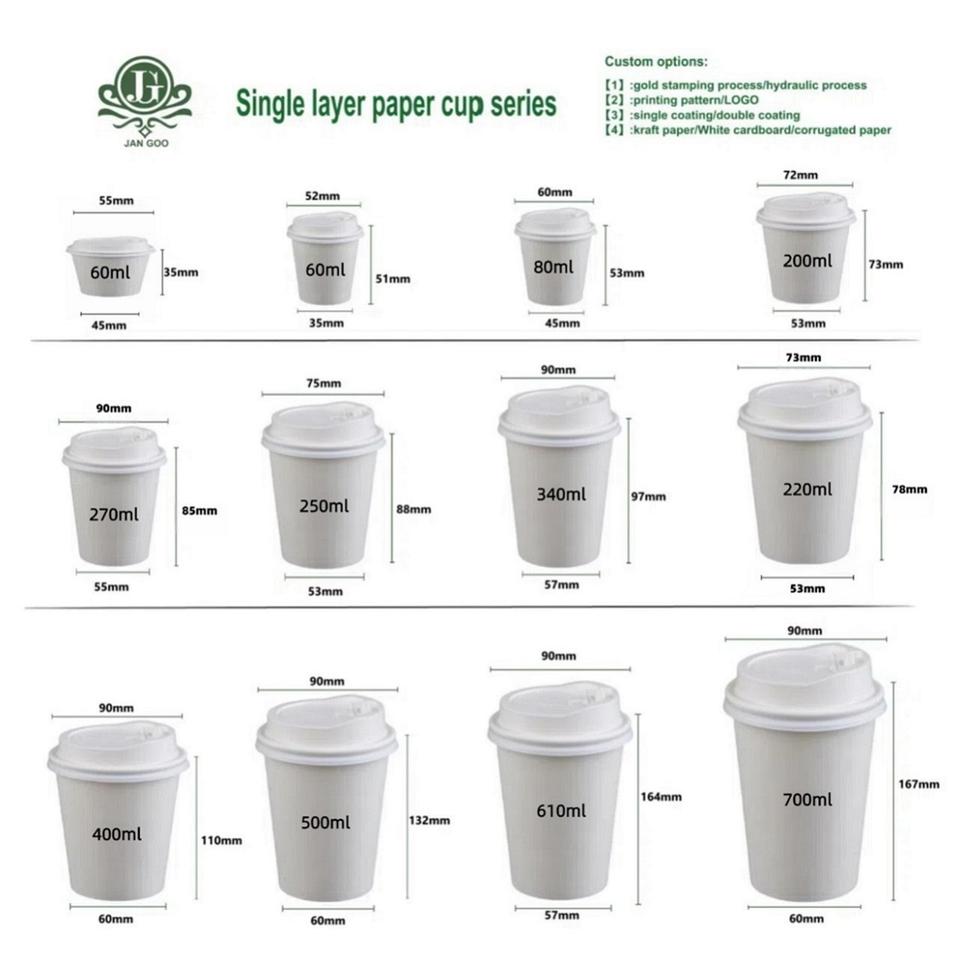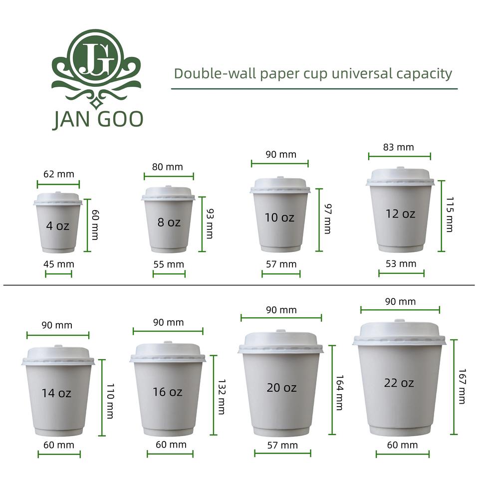 Gobelets à café jetables à double paroi 4oz 6oz 7oz 8oz 10oz 90mm de diamètre Boisson chaude avec couvercle en PP anti-fuite