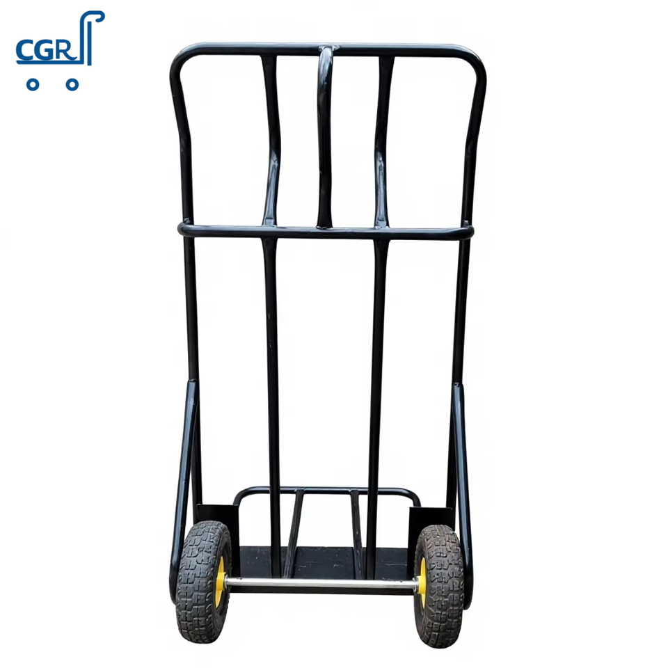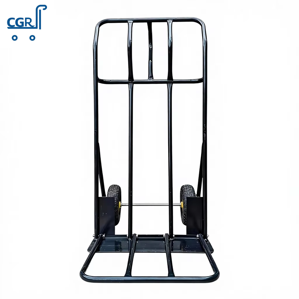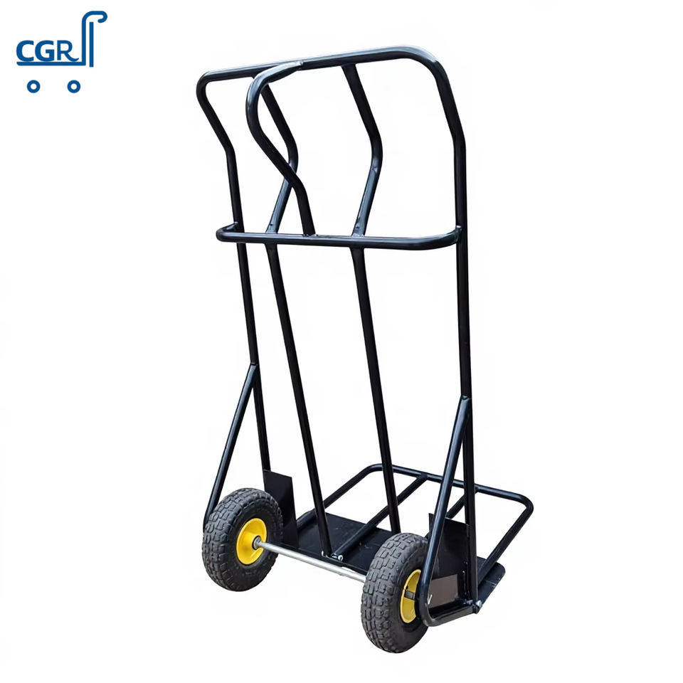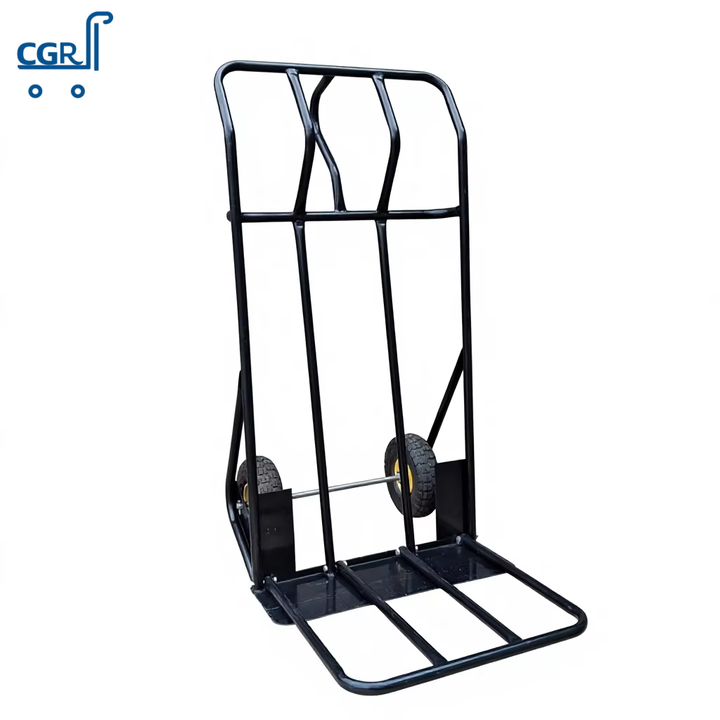 Chariot à double roue robuste en acier pliable OEM, chariot de manutention à plateforme avec revêtement en poudre pour chantier de construction