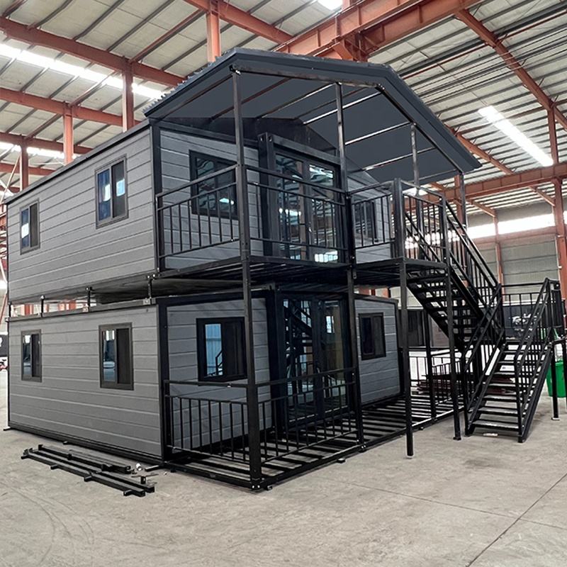 Maison extensible à deux étages à double aile, installation rapide en 10 minutes, isolée pour -30°C ℃ ~50 ℃ Maison modulaire préfabriquée, aménagement de pièces personnalisé, villa