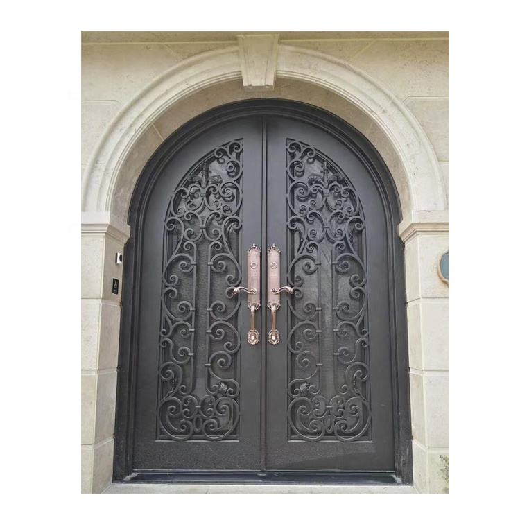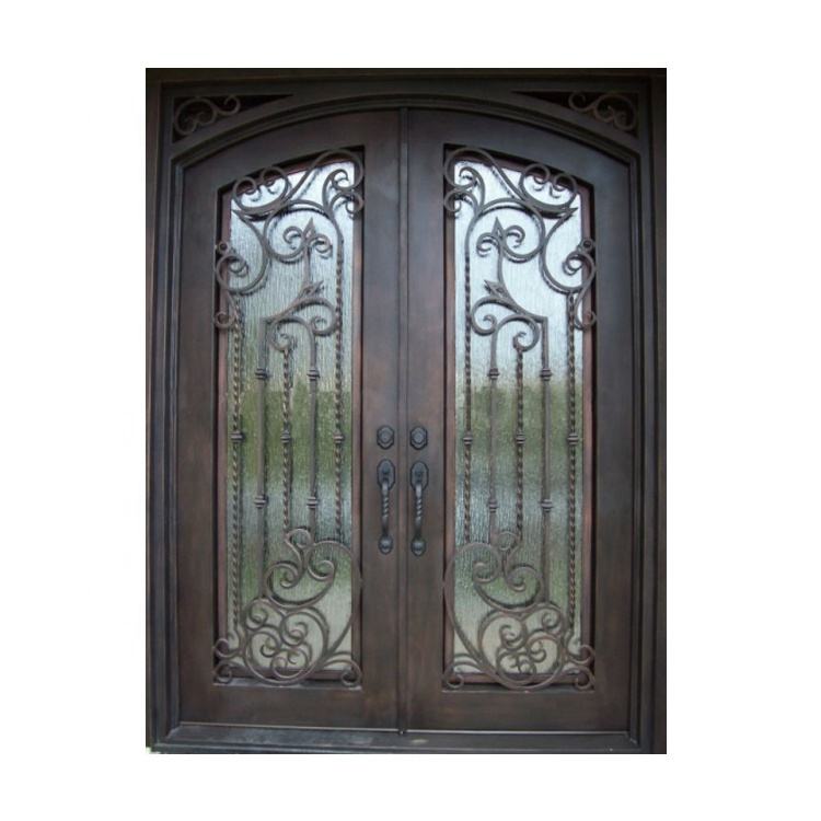 Porte double en fer forgé avec rupture de pont thermique et vitrage