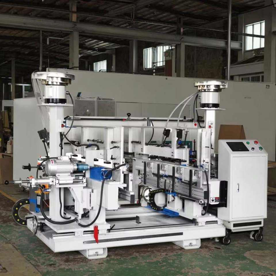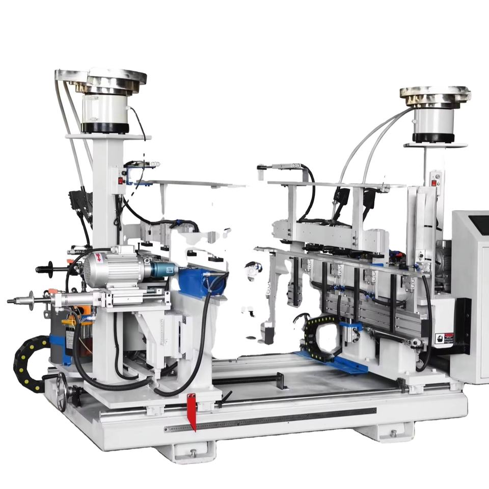 Machine à mortaiser à double tête pour la production de structures à mortaise et tenon pour le raccordement de panneaux de meubles et de matériaux de construction